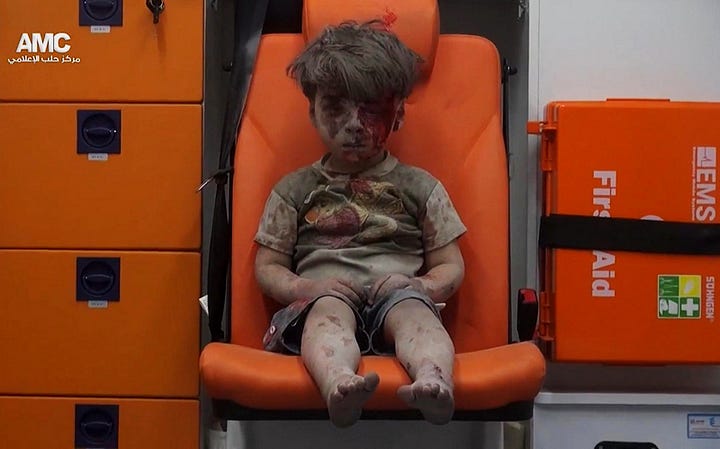 In 2017, in his Aleppo home, his father told me their home was not hit in an airstrike, but rather terrorists shelled it and used the boy in a cynical, and effective, photo op.